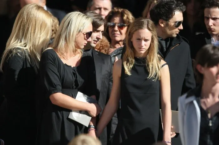 Juliette Martin, la fille de Jacques Martin et Céline Boisson, lors des obsèques de son père. Elle a également un petit frère prénommé Clovis.