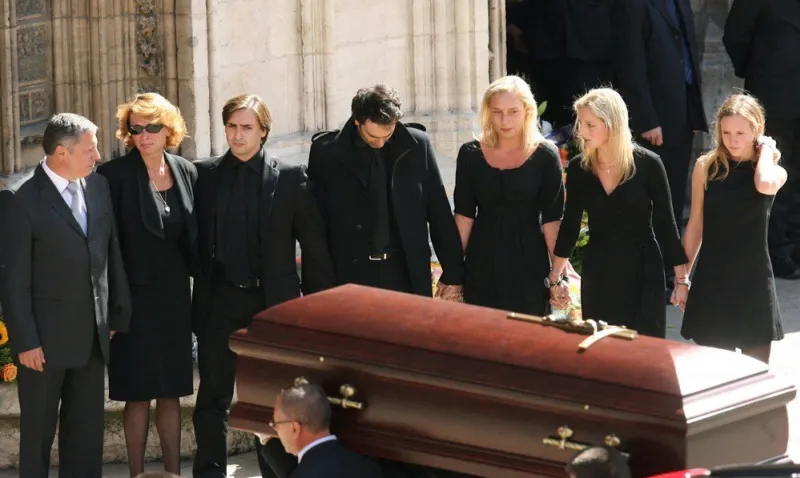 Les enfants de Jacques Martin réunis autour de son cercueil lors de ses funérailles.