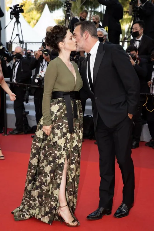 Jean Dujardin et son épouse Nathalie Péchalat s'embrassant sur le tapis rouge du Festival de Cannes en 2021.