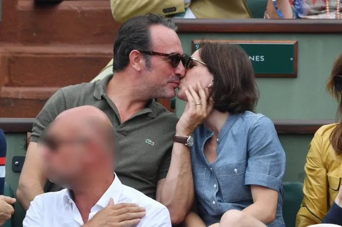 Jean Dujardin et Nathalie Péchalat lors d'un moment de tendresse capturé par les photographes à Roland-Garros en 2018.