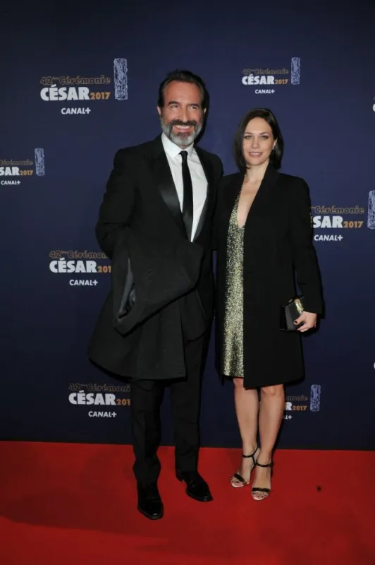 Nathalie Péchalat et Jean Dujardin sur le tapis rouge des César en 2017.