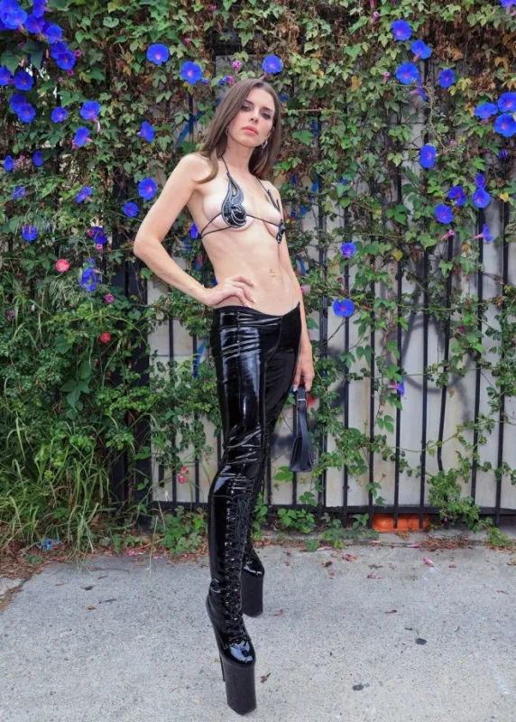 Depuis le début du mois d'avril 2022, la jolie brune a fait sensation à de nombreuses reprises dans des tenues sexy dévoilant parfois son ventre plat ou un décolleté échancré. Cette fois-ci, Julia Fox a opté pour un look canon mais déconcertant. C'est dans un haut de bikini, agrémenté d'un pantalon en latex à talons vertigineux qu'elle a paradé dans les rues de Los Angles. Son microbikini laissait peu de place à l'imagination.