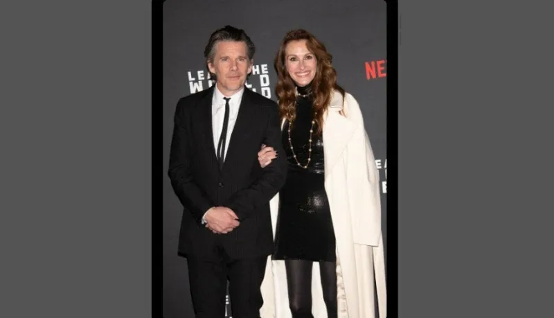 Julia Roberts et Ethan Hawke sur le tapis rouge de la première à New York du film Le Monde après nous, le 4 décembre 2023.