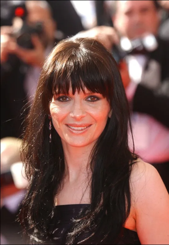 L'actrice Juliette Binoche totalement métamorphosée avec les cheveux longs et une frange en 2002.