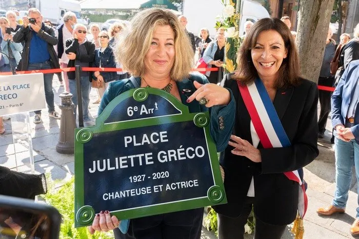 Julie-Amour, la petite-fille de Juliette Gréco lors de l'inauguration d'une place en l'honneur de la chanteuse.