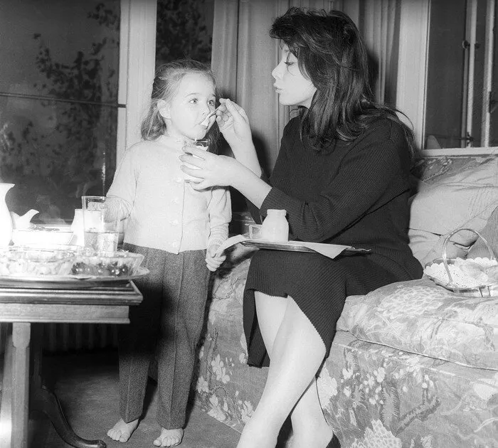 Photo ancienne de Juliette Gréco avec sa jeune fille Laurence-Marie.