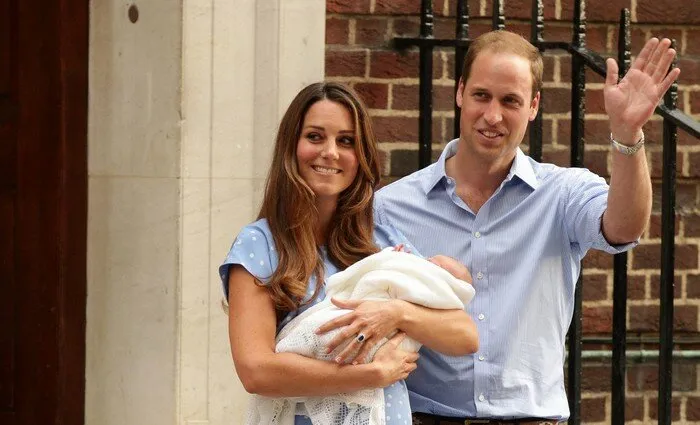 Kate Middleton tenant dans ses bras son premier enfant, le prince George.
