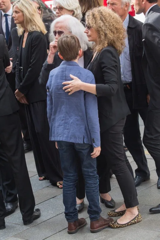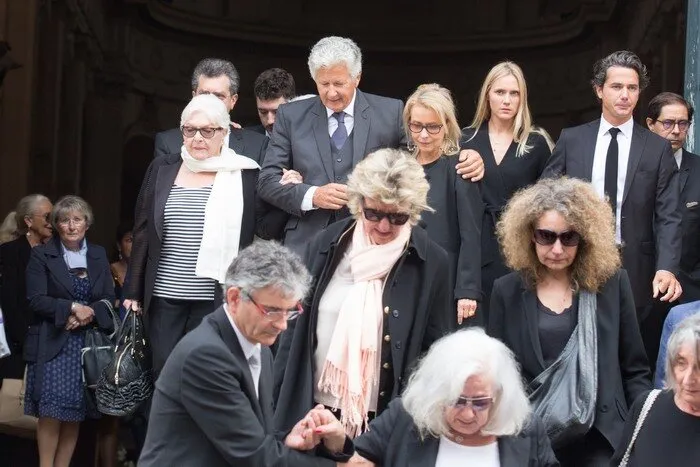 Maria-Pia en premier plan et son frère Pierre Dhostel au côté de Line Renaud lors des obsèques de leur père.