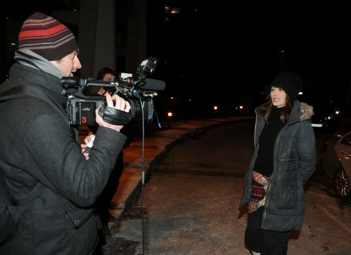 La comédienne Mallaury Nataf devant les studios de Direct 8 en 2012.