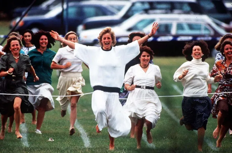 La princesse Lady Diana lors d'une course entre mères organisée par l'école de ses enfants.