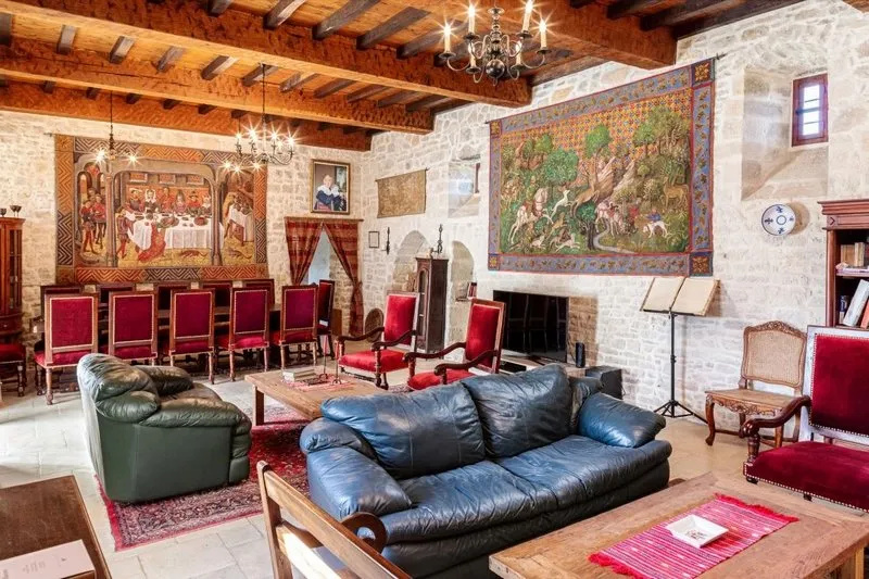 À cette époque, le Franco-Américain John Manchec s’est positionné pour acquérir ce bien immobilier de 67 hectares. Après d’importantes rénovations, on trouve notamment "dix-neuf chambres avec salles de bains, des combles aménagés, une grande salle voûtée, une cour intérieure, un billard, un bureau, une cuisine, ainsi qu’une chapelle, chambre de bonne et du curé, un court de tennis", nous détaille l’expert immobilier, estimant le bien à 4,7 millions d’euros. "Il y a même un petit vignoble au château où sont produit 4000 bouteilles à l’année".