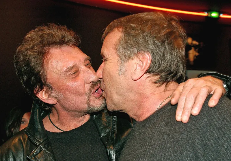 Le baiser de Johnny Hallyday et Michel Sardou