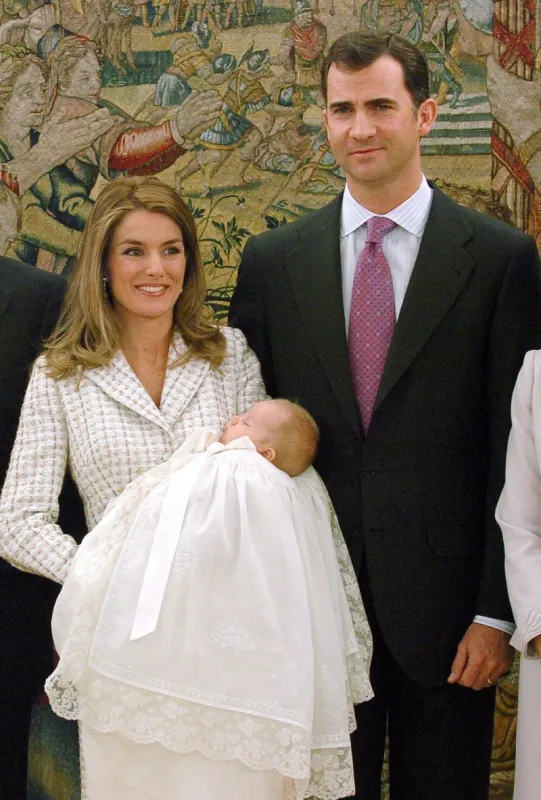 Le couple royal présentant leur fille Leonor, née en octobre 2005.