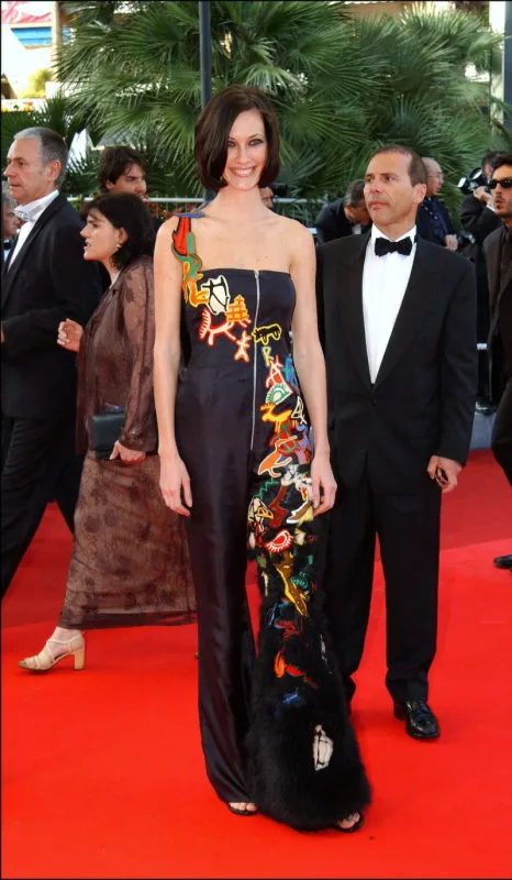 Mareva Galanter dans une sublime robe orange lors du Festival de Cannes en 2003.