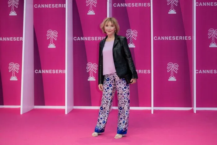 La star de 72 ans était radieuse au Festival International des Séries de Cannes, le 7 avril 2024.