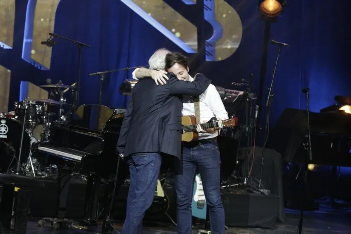 Maxime Le Forestier et Vianney lors de la 7e cérémonie de remise des Grands Prix Sacem à Paris en 2015.
