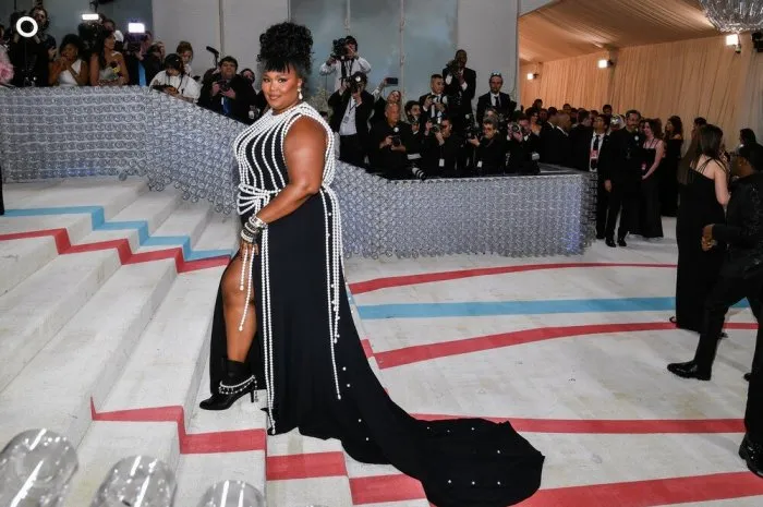 La chanteuse Lizzo était très sexy dans cette robe noire à perles.