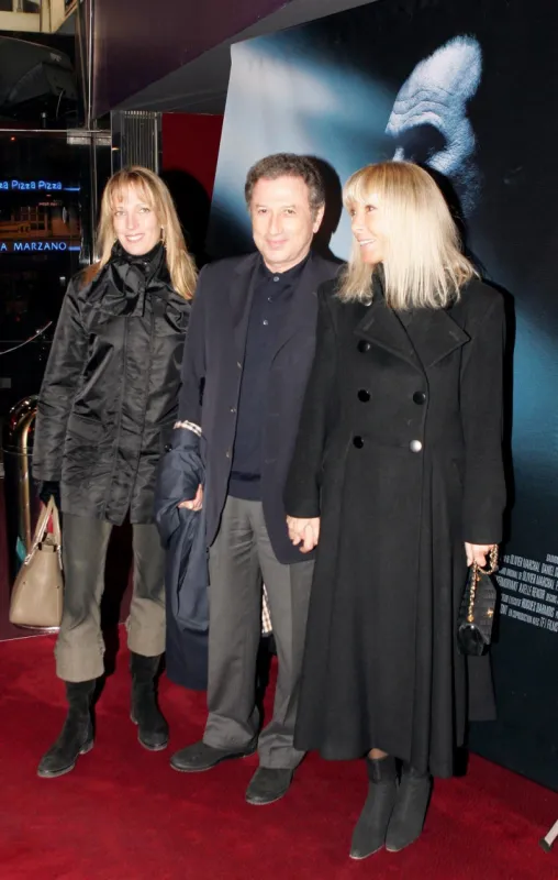 Michel Drucker prenant la pose au côté de son épouse Dany Saval et de sa fille Stéfanie Jarre en 2004.