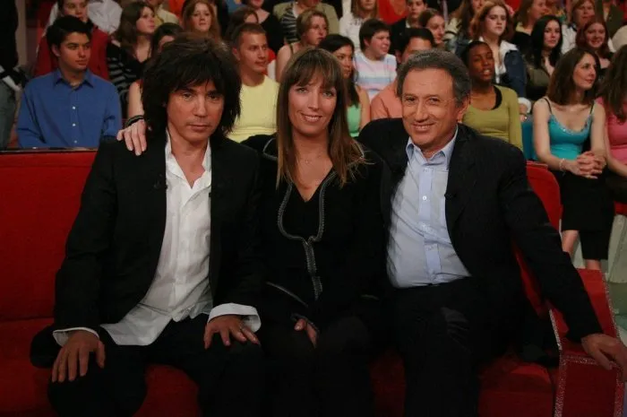 Jean-Michel Jarre aux côtés de sa demi-soeur Stéfanie et l'animateur Michel Drucker dans son émission Vivement dimanche en 2007.