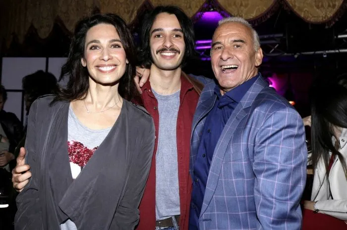Michel Fugain prenant la pose aux côtés de sa fille Marie et de son fils Alexis en 2017.