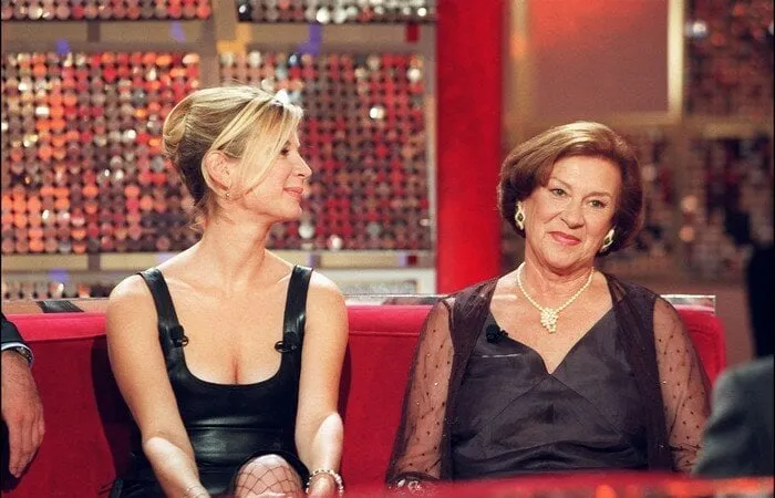 Michèle Laroque et sa mère Doïna sur le plateau de Vivement dimanche en 2001.