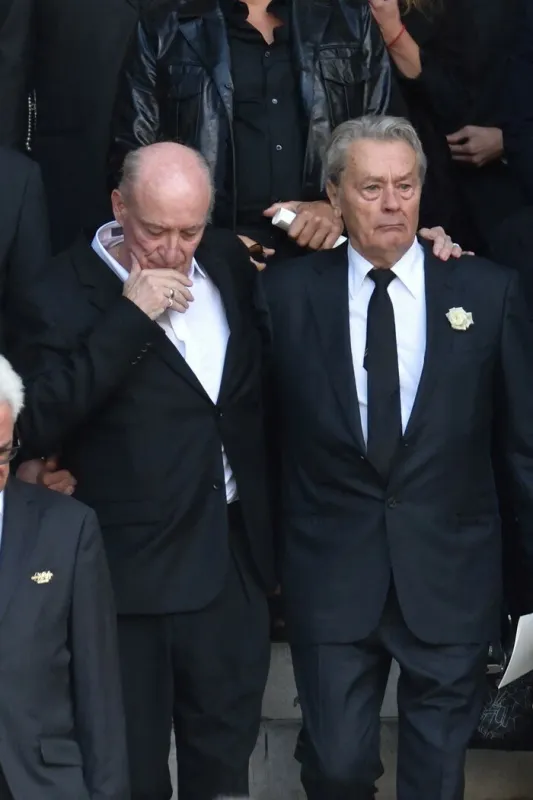 Pascal Desprez et Alain Delon aux obsèques de la comédienne Mireille Darc en 2017.