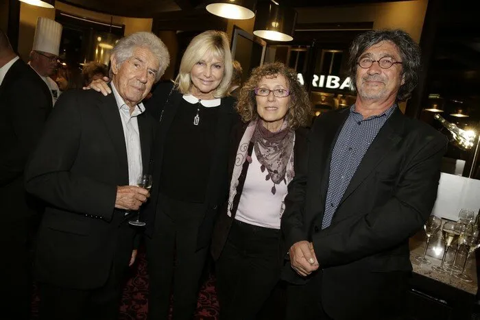 Le couple Gildas accompagné de Mireille Dumas et de son mari Dominique Colonna lors de l'ouverture d'un restaurant sur les Champs-Élysées.