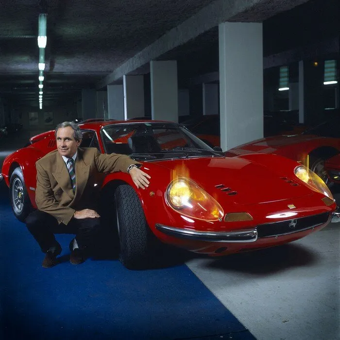 Patrice Laffont prenant la pose près d'une Ferrari.