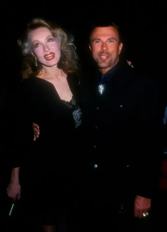 Le couturier Thierry Mugler prenant la pose auprès de la comédienne Julie Newmar à Westwood en 1994.