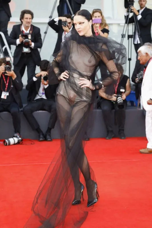 Mostra de Venise : la mannequin Mariacarla Boscono presque nue sur la tapis rouge