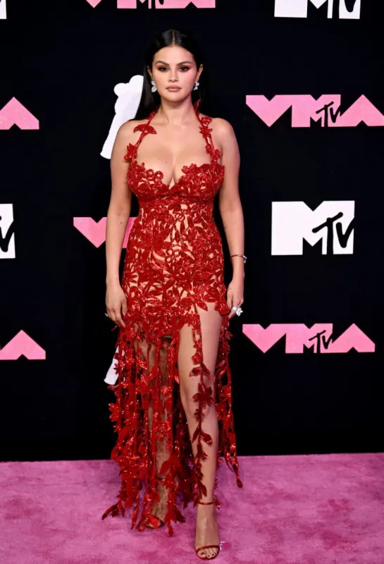 La chanteuse Selena Gomez était resplendissante dans cette robe rouge échancrée.
