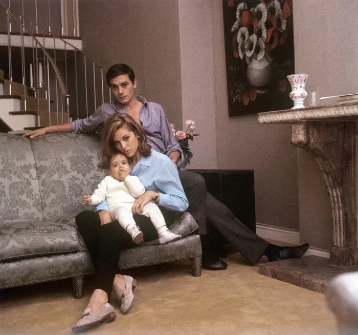 Nathalie et Alain Delon prenant la pose ensemble en 1960.