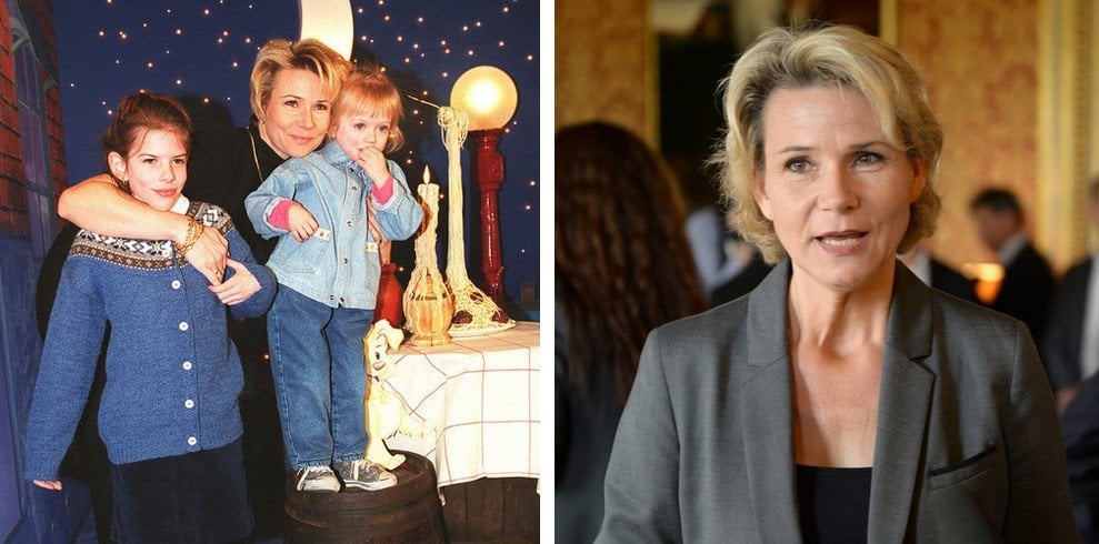 La présentatrice météo Nathalie Rihouet et ses filles à la première de La Belle et le Clochard 2 en 2001.