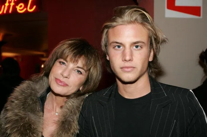 La comédienne Nicole Calfan prenant la pose au côté de son fils Jérémy en 2005.