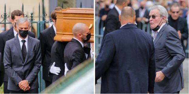 L'entrée du cercueil de Belmondo suivi de ses proches