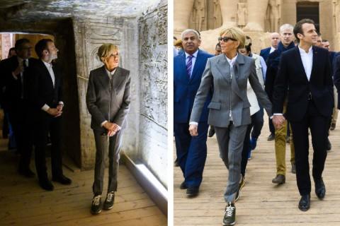 Le tabloïd britannique du Dailymail semble bien perplexe quant au dernier choix vestimentaire de Brigitte Macron. En effet, cette dernière s'est rendue à une visite officielle du temple égyptien Abu Simbel en... baskets Louis Vuitton estimées à 730€. Le journal titre "Brigitte Macron, 65 ans, laisse perplexe après avoir associé une paire de baskets Louis Vuitton à 730 euros avec un costume pour visiter un temple vieux de 3000 ans en Egypte".