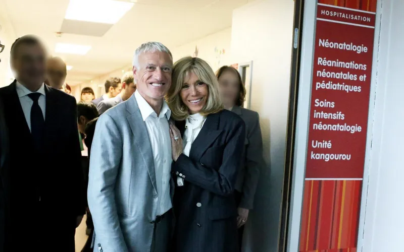 Brigitte Macron était accompagnée du parrain des Pièces Jaunes, l'entraineur Didier Deschamps.