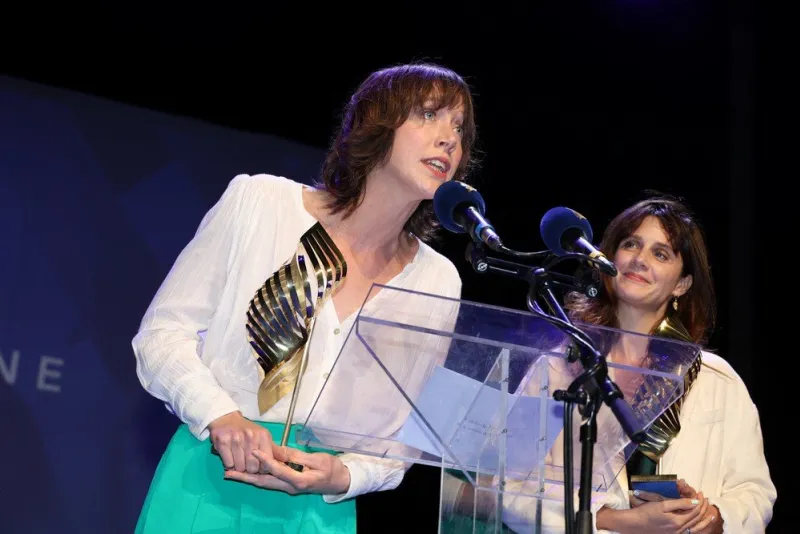 La comédienne a reçu le Valois de la meilleure actrice pour Le sixième enfant partagé avec Judith Chemla lors du Festival d'Angoulême, ce 28 août 2022.