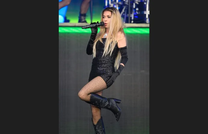 Sur scène, Shania Twain est apparue avec une robe noire moulante à sequins très courte, portant des bas résilles, des bottes et son chapeau de cow-boy. La quinquagénaire a enflammé la foule avec ses musiciens et ses choristes, en paradant sur scène. Mais sa tenue légère en dévoilait un peu trop, révélant par accident sa culotte de la même couleur que sa robe.