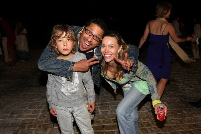Le comédien, entourée de sa compagne et de ses enfants Rayanne et Kenza en 2004.