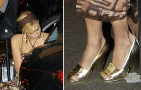 Paris Hilton en balade dans les environs de Los Angeles en 2006, portant à ses pieds des chaussures Prada.