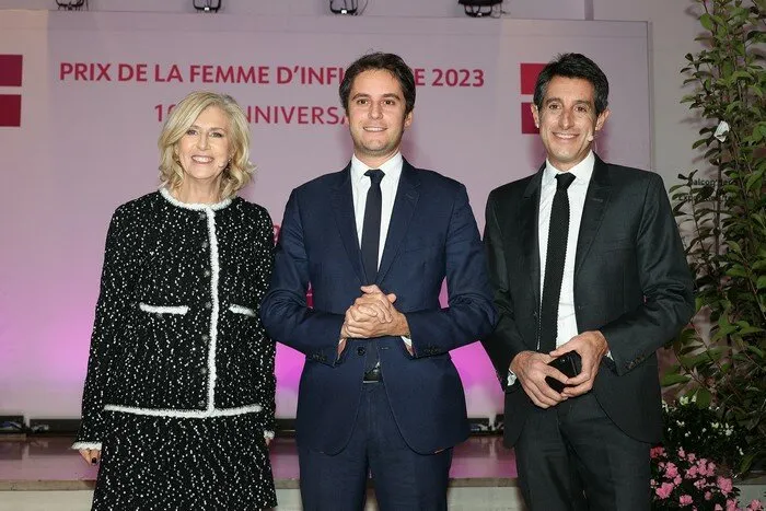 Patricia Chapelotte, Gabriel Attal et Thomas Misrachi lors du Prix de la femme d'influence en 2023
