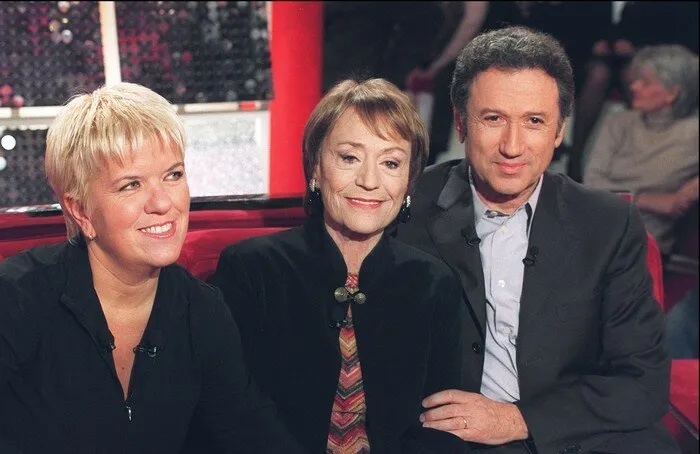 La comédienne Annie Girardot entourée de Mimie Mathy et Michel Drucker dans l'émission Vivement dimanche 2001.