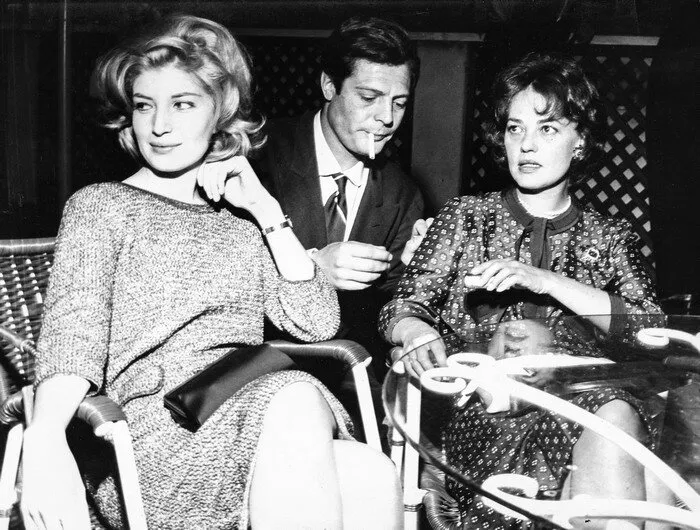 Monica Vitti, Marcello Mastroianni et Jeanne Moreau à Milan dans les années 60.