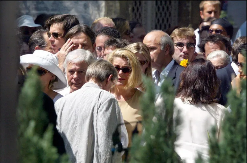 Catherine Deneuve et Daniel Auteuil, émus, lors des funérailles de l'actrice.