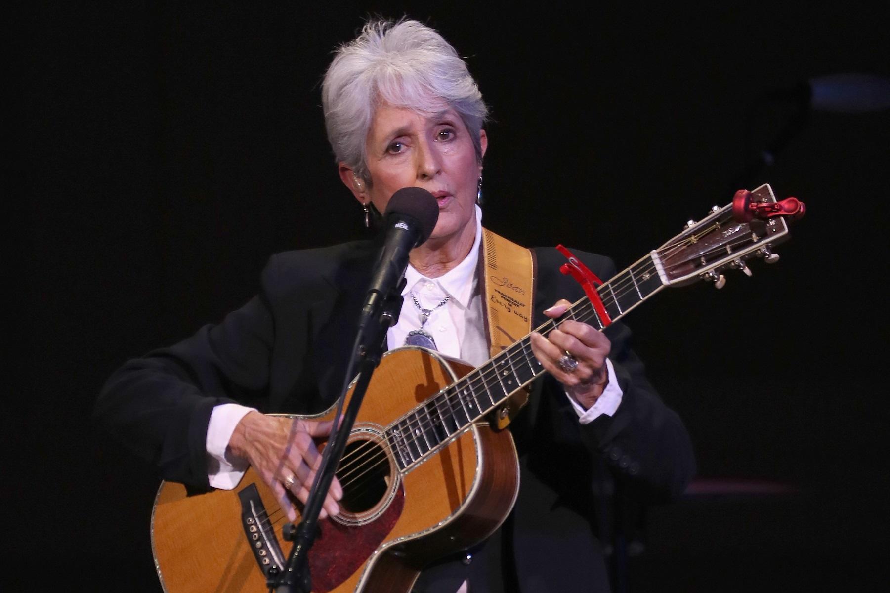 new york, ny - november 05  joan baez performs on stage during pathway to paris concert for climate action at carnegie hall on november 5, 2017 in new york city  kevin kane getty images for undp afp