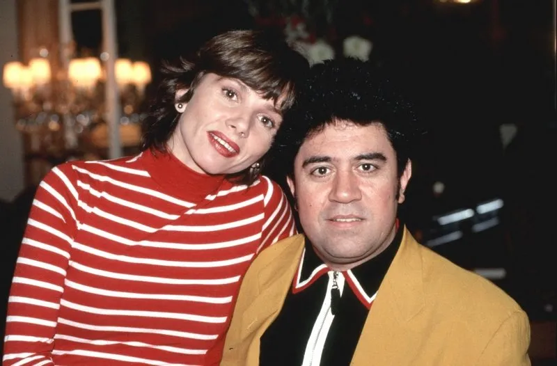 Le réalisateur Pedro Almodovar et sa muse, l'actrice Victoria Abril, posant tous les deux à Madrid en 1992.
