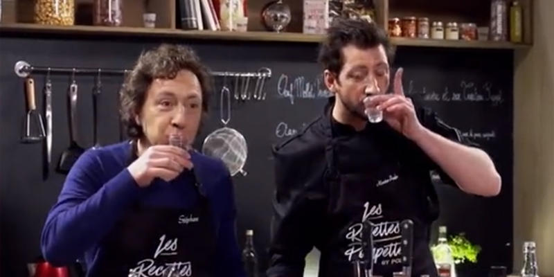 Dans l'émission de Monsieur Poulple, Stéphane Bern cuisine en enchaînant les shots de vodka.