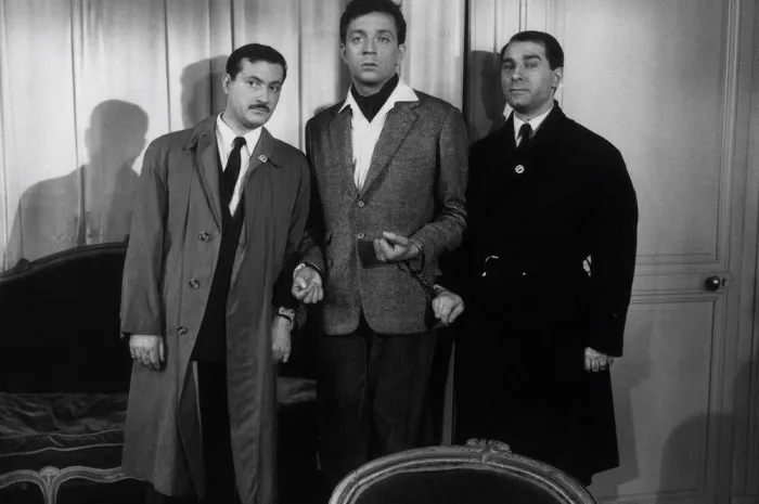Michel Serrault, Jean-Pierre Cassel et Jean Poiret sur le tournage du film Candide ou l'optimisme du xxe siècle en 1960.