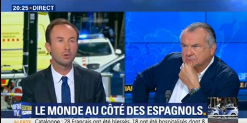 Le passage d’Alain Marsaud, ou plutôt son départ précipité du plateau de BFM TV vendredi soir n’est pas passé inaperçu. Cet ancien magistrat et ex-député LR était invité au lendemain des attentats de Barcelone aux côtés d’un chroniqueur de France Inter, Anthony Bellanger.